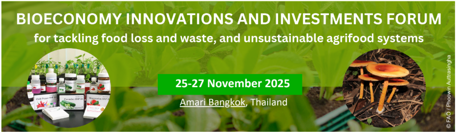 The Bioeconomy Innovations and Investments Forum is being organized to contribute to the above initiatives towards the transformation of agrifood systems through results-driven and programmatic approaches with more policy coherence and cooperation in the region. This hybrid Forum will provide a platform to exchange knowledge and experiences on bioeconomy innovations, including for reducing FLW, strengthen capacity among stakeholders, and connect innovators with investors to facilitate replication and scaling up of successful bioeconomy solutions for agrifood system transformation.