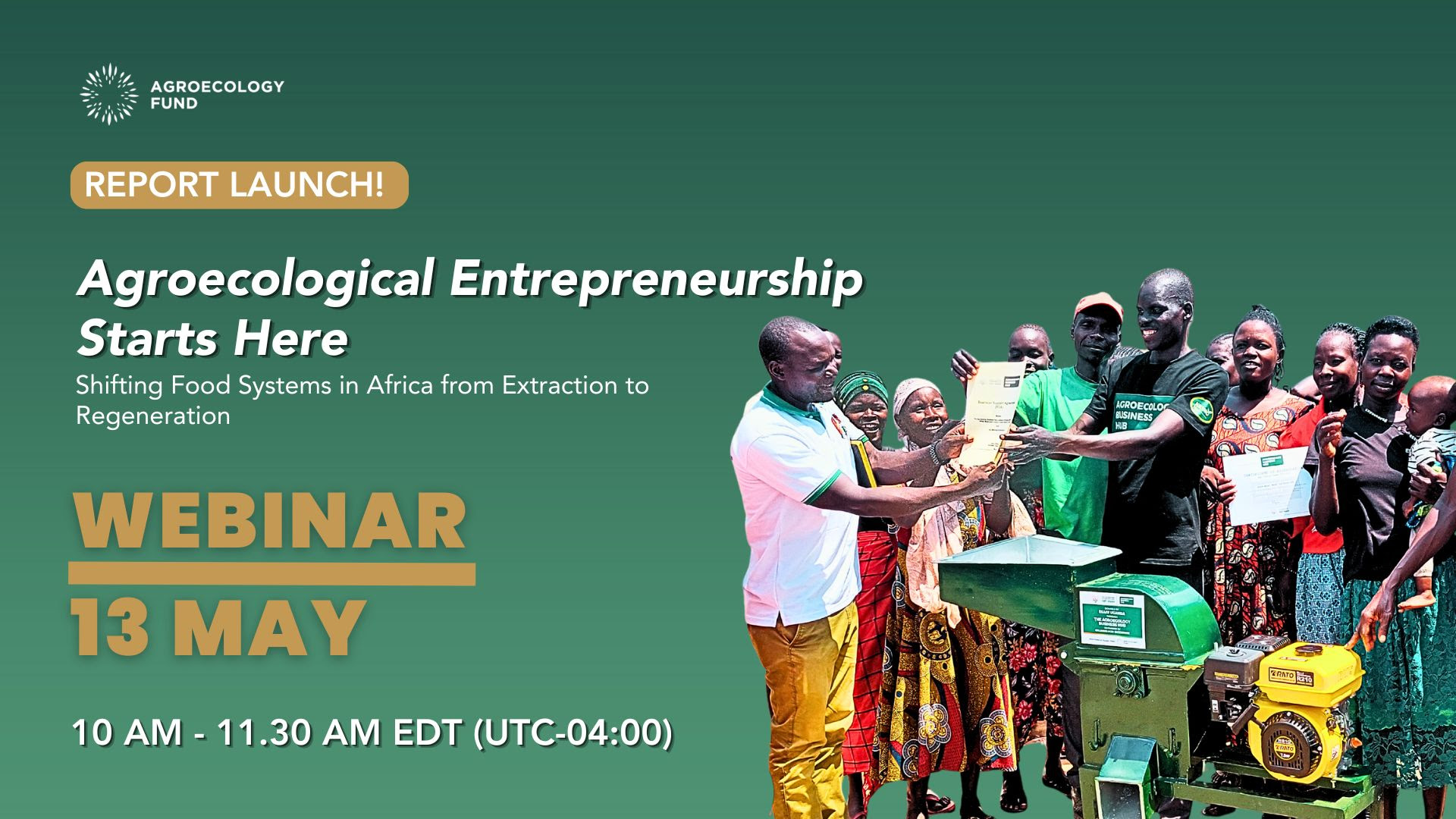 The Agroecology Fund (AEF) would like to share rich learnings with you, gleaned through dialogue with 15 grassroots organisations and networks across Africa who have implemented Business Planning Grants. The goal of the grants was to finance needed research, planning and support to bridge the gap between food production as a way of life and as a way to build a healthy economy - while simultaneously strengthening a vibrant African agroecology movement. Representatives of these initiatives – from Senegal to Cameroon to Uganda - will share their stories on the call.